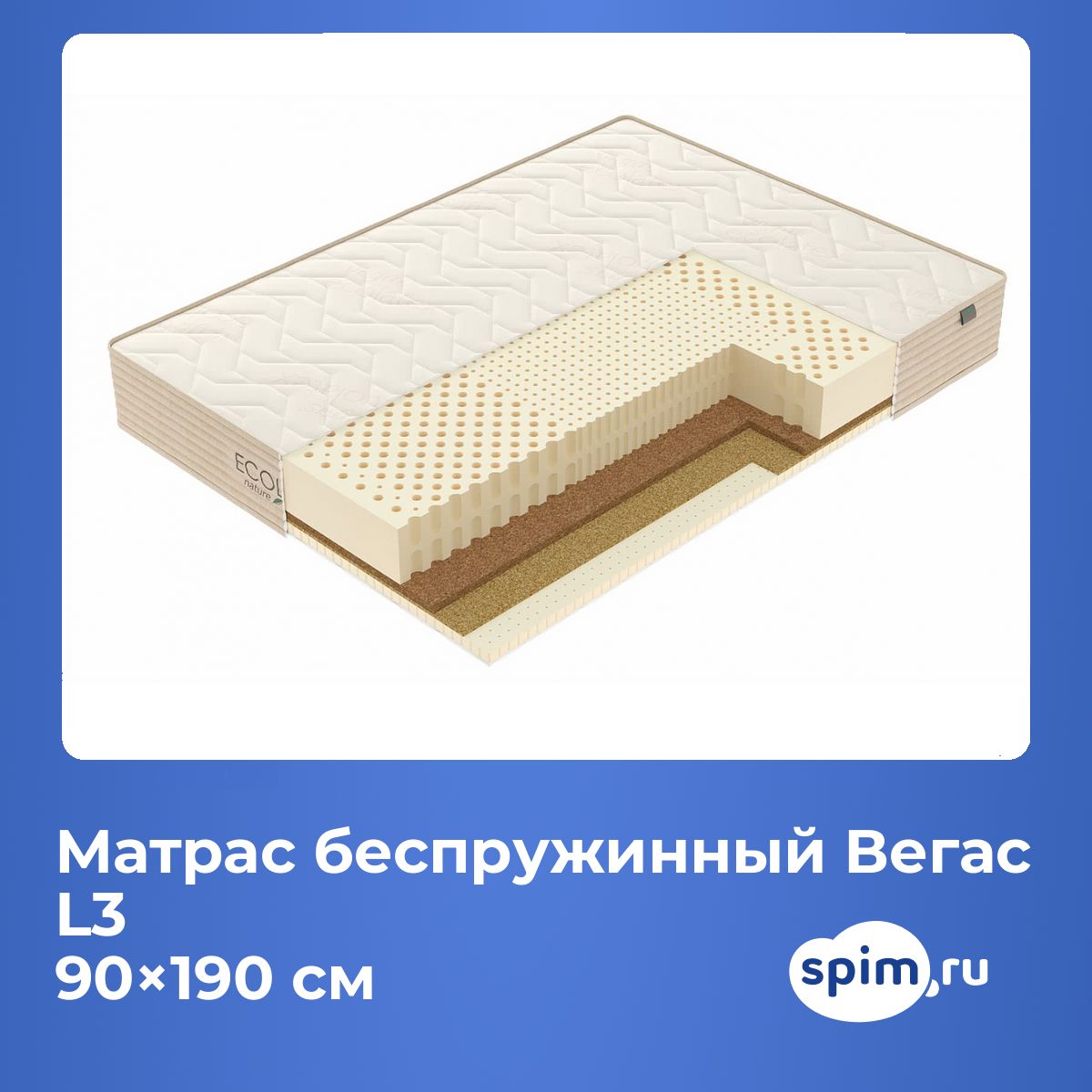 Кокос — натуральный материал, койра отлично дышит, придает матрасу «L3» жесткость и упругость.